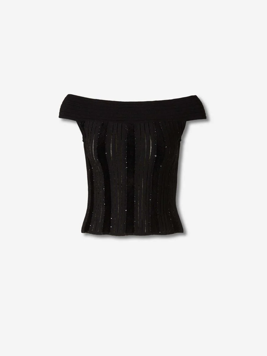 Off-the-shoulder glitter knit top