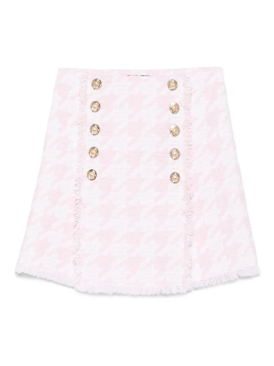 Button-embellished pleated checked cotton-blend tweed mini skirt Pink