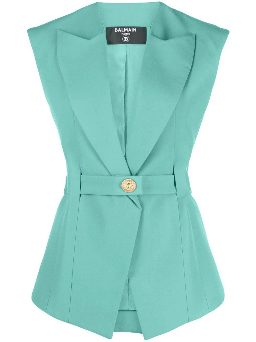 BALMAIN SLEEVELESS BELTED WOOL JACKET