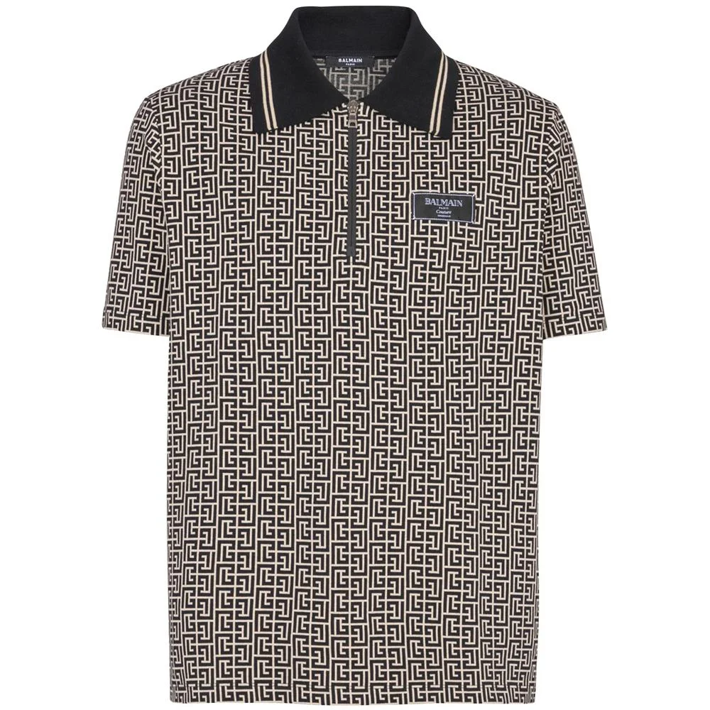 Black cotton blend patterned jacquard half front zip fastening logo patch at the chest short sleeves straight hem Gender: Men Material: COTTON: 95.0%, ELASTANE: 5.0% Color: Multicolor Made in: Portugal Product ID: EH1GC027BC90 BC90 GFE *Import tax/duty will be calculated at checkout (If applicable)
