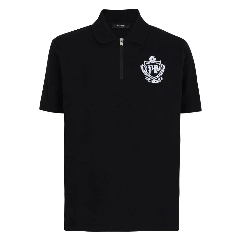 Black short sleeves half-zip fastening embroidered emblem cotton Gender: Men Material: COTTON: 100.0% Color: Black Made in: Portugal Product ID: FH0GC027 GF30 EAB *Import tax/duty will be calculated at checkout (If applicable)