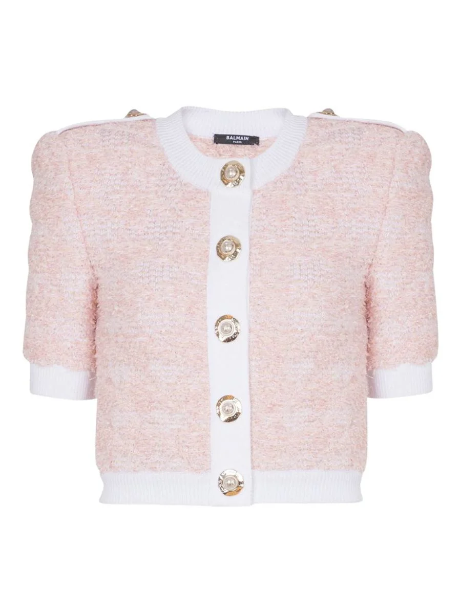 powder pink front button fastening logo-embossed buttons contrasting trim epaulettes This piece fits true to size. We recommend you get your regular size Model is 1,75m / 5ft 8in wearing size 36 (FR) Gender: Women Material: 66%POLYAMIDE 16%VISCOSE 13%COTON 03%POLYESTER 02%POLYESTER METALLISE Color: PINK Made in: Imported Product ID: FF1KL235KI72OIN *Import tax/duty will be calculated at checkout (If applicable)