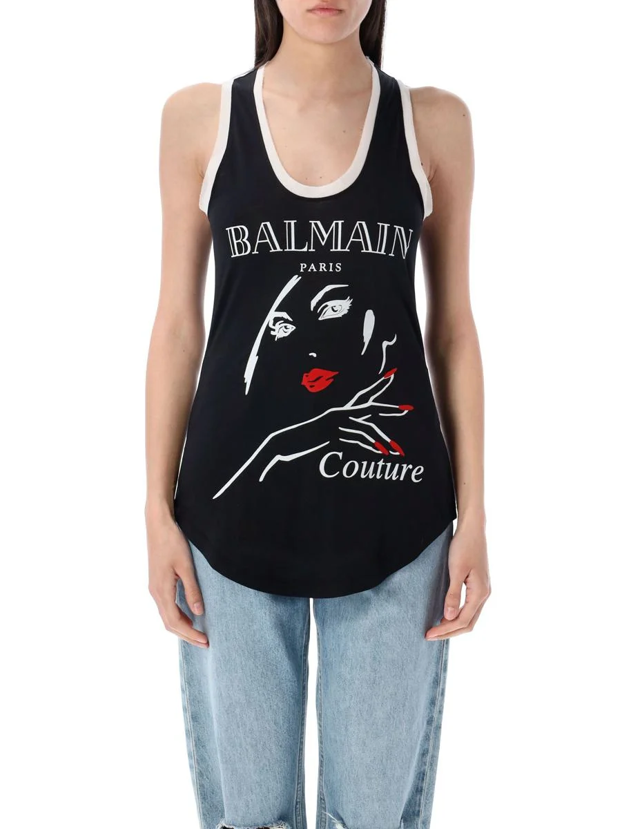 Flocked relaxed tank top with Balmain Beauty print