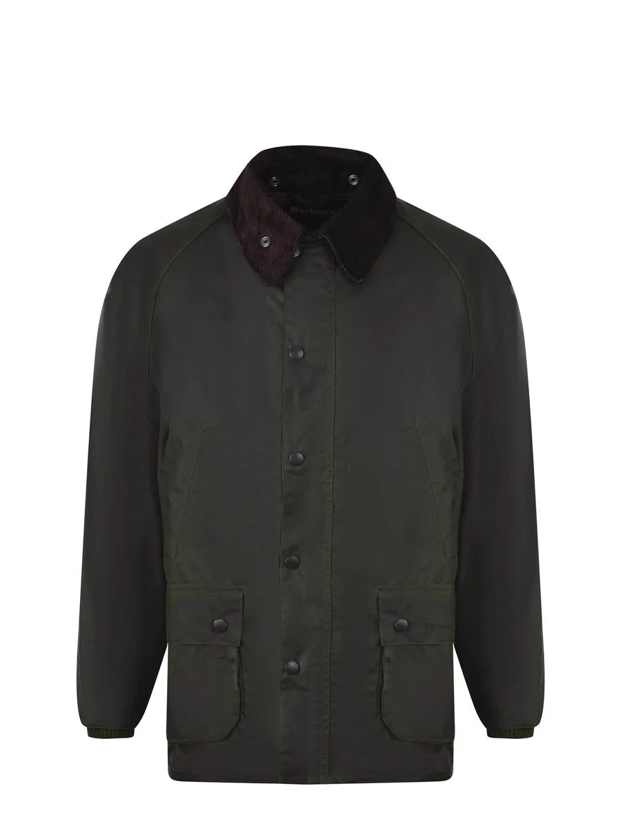 Barbour in cotton jacket Military green. Ribbed shirt collar with buttons. Zip and button closure. Chest pockets. Flap pockets on the sides with button closure. Cuffs with elastic. On the back bottom with buttons. Lined Gender: Men Material: COTTON Color: VERDE MUSCHIO Made in: GB Product ID: MWX0018OL99 *Import tax/duty will be calculated at checkout (If applicable)