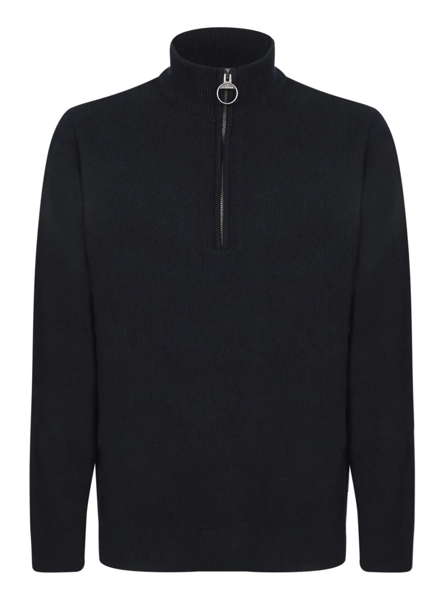 Knitted sweater with partial zip. High collar. Ribbed trim. Explore effortless elegance with the Barbour navy knitted sweater. Featuring a practical high collar and partial zip, it's perfect for refined layering during colder months. Gender: Men Material: 100%WOOL Color: BLUE Made in: Imported Product ID: MKN0837 NY91 *Import tax/duty will be calculated at checkout (If applicable)