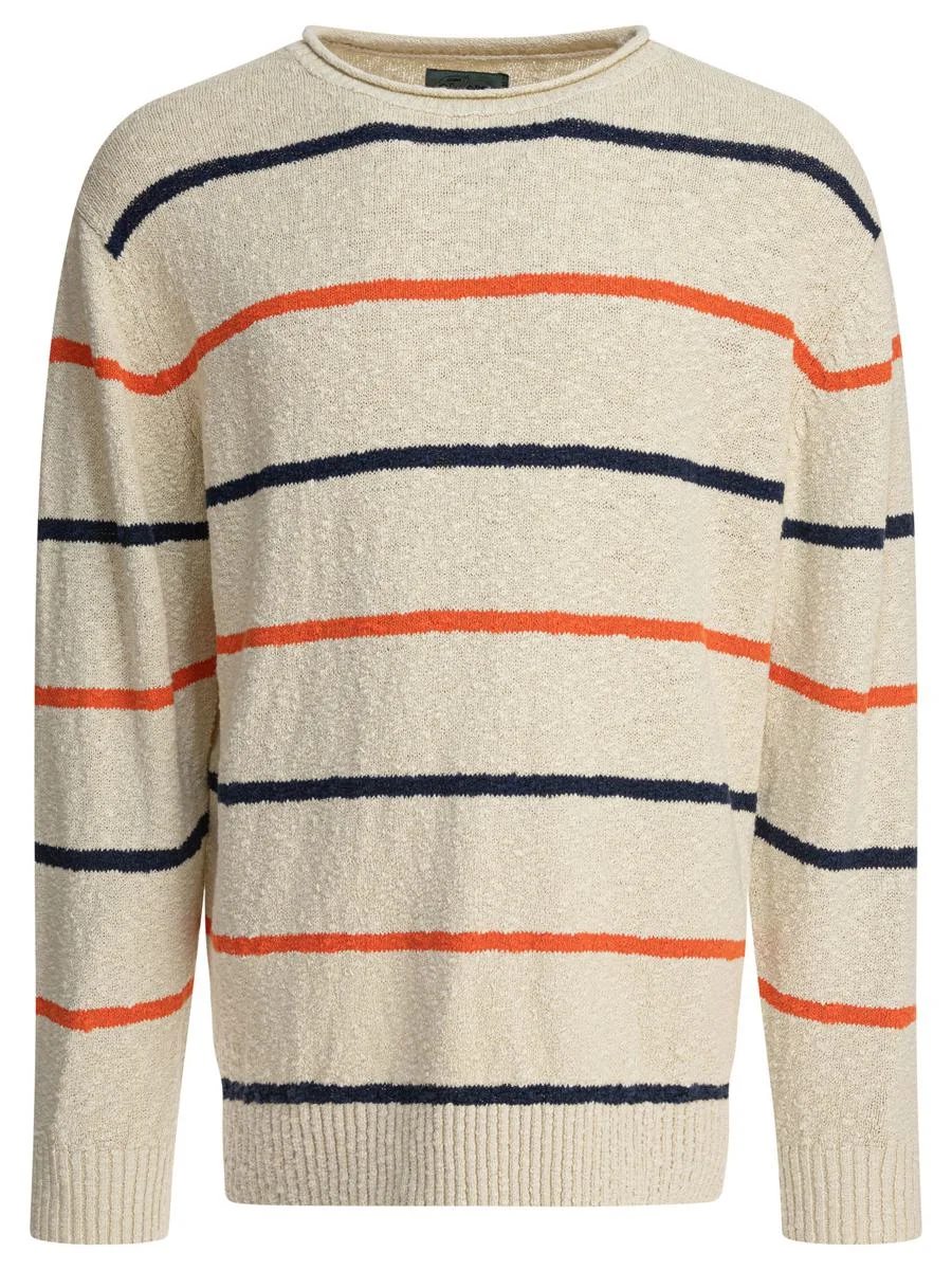 Beams Plus' striped crewneck sweater combines classic clothing appeal with a modern twist. Made from a blend of cotton and linen, it features a relaxed fit that ensures comfort for any occasion. It is a perfect choice for those who love a casual yet elegant style with refined details that emphasize its uniqueness. || - Striped - Long sleeves - Roll neckline - Relaxed fit - Eco-friendly product || This sweater is ideal for adding a touch of sophistication to any look, whether for outings in the city or more relaxed evenings. The striped design is perfect to pair with chinos or jeans for a casual yet polished look. Special Description:Inspired by American style, this garment pairs easily with lightweight overcoats for cooler days, becoming an essential in any style-conscious man's wardrobe. Extra Description: StripedRelaxed fit;Long sleeves Gender: Men Material: 87% COTTON 8% FLAX 4% NYLON 1% POLYURETHANE Color: WHITE Made in: Imported Product ID: 3815022515601 *Import tax/duty will be calculated at checkout (If applicable)