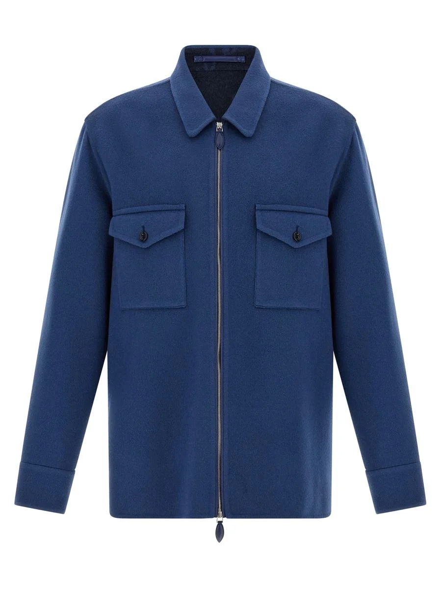 Overshirt in double wool and cashmere cloth, front zip closure, pockets, long sleeves with cuffs, unlined Gender: Men Material: 70% WOOL 30% CASHMERE Color: BLUE Made in: Italy Product ID: R29HCL10300131F *Import tax/duty will be calculated at checkout (If applicable)