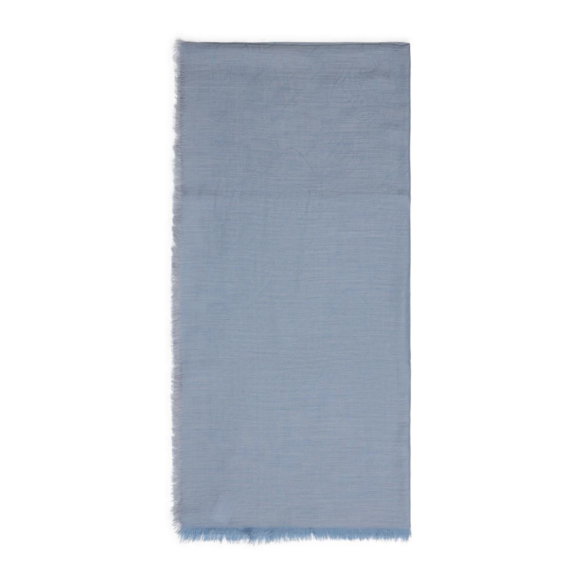 Berluti Light Blue Cashmere Scarf. Crafted from light blue cashmere and cotton, Scritto jacquard all over, fringed hems. Gender: Men Material: 51%CASHMERE 49%COTTON Color: BLUE Made in: IT Product ID: T28SJ189.001_12 *Import tax/duty will be calculated at checkout (If applicable)