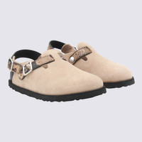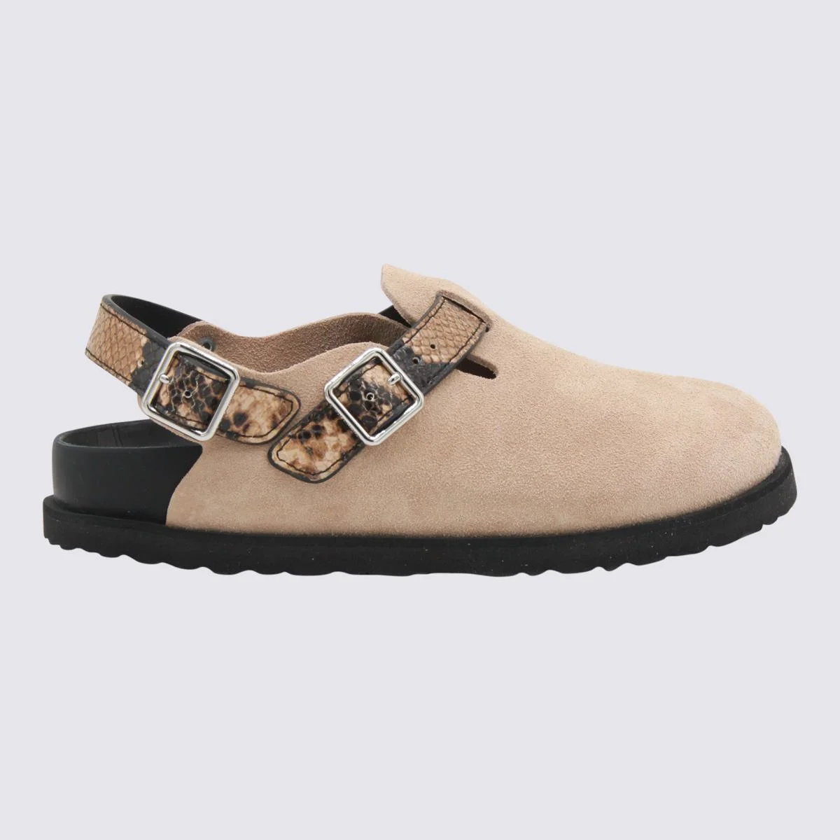 Tokio Cazador snake-effect leather-trimmed suede clogs Beige