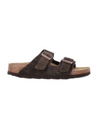 The Arizona sandals by Birkenstock blend iconic style with ergonomic comfort in a soft mocha suede finish. Featuring the brand's signature soft footbed with an extra foam layer, they mold perfectly to the foot for personalized support. Complete with adjustable straps and a shock-absorbing EVA sole, this minimalist silhouette is crafted for effortless, everyday wear. Suede leather upper in mocha brown Anatomical soft cork-latex footbed with foam layer Dual adjustable straps with metal buckles EVA outsole for flexibility and cushioning Suede lining for natural breathability Deep heel cup and arch support Narrow fit Gender: Men Material: 100% LEATHER FOOTBED 100% CORK SOLE 100% EVA Color: MOKKA Made in: Germany Product ID: 25P951313#MO *Import tax/duty will be calculated at checkout (If applicable)