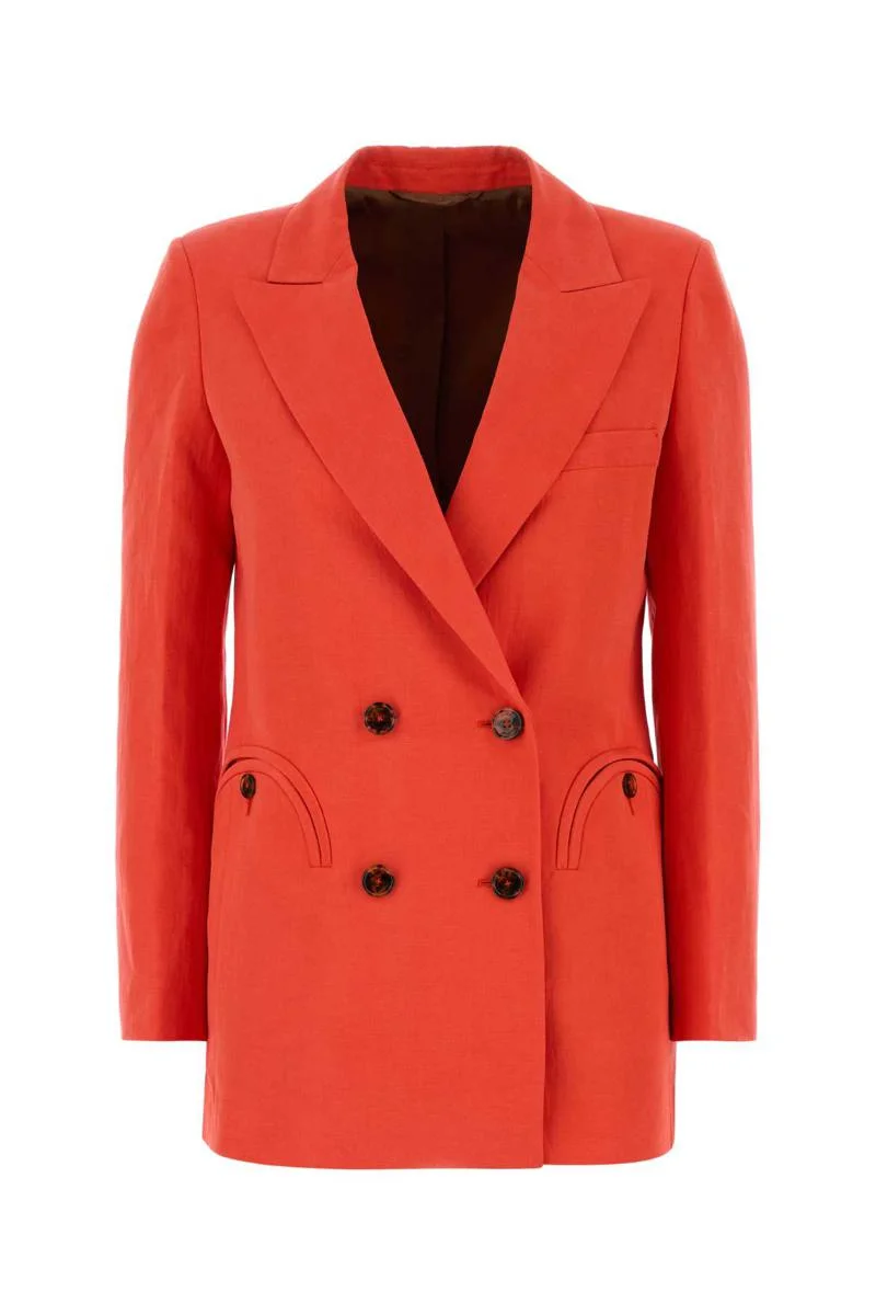 Flica Everyday double-breasted silk and linen-blend blazer Coral