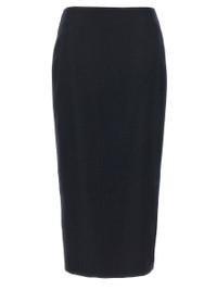 'Maine Sussex Longuette' midi skirt in herringbone patterned wool, high waist, split zip closure and 'Smiley' back pocket, viscose lining with monogram print Gender: Women Material: 100% VIRGIN WOOL Color: BLUE Made in: Italy Product ID: SKLSK01MNENB01 *Import tax/duty will be calculated at checkout (If applicable)