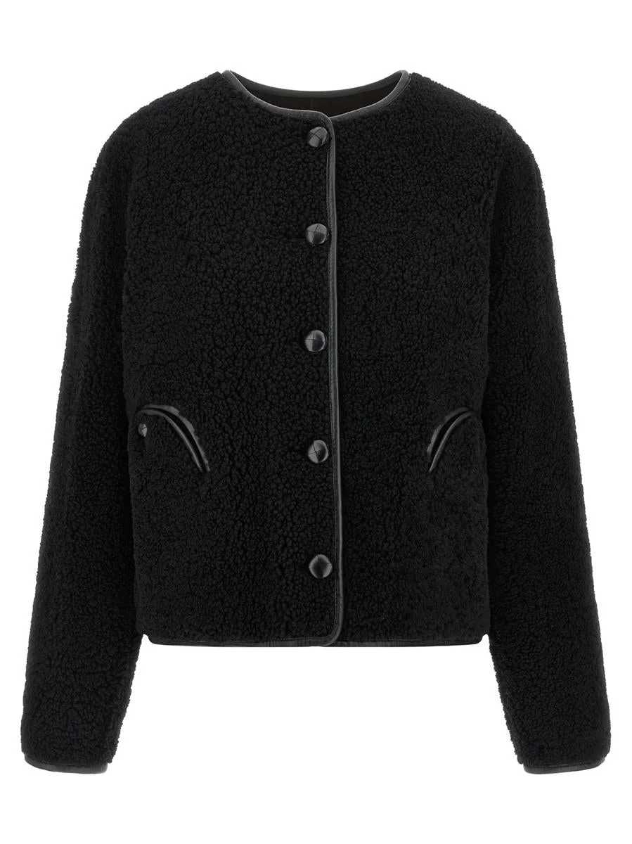 'Tatoosh Gliss' reversible suede and shearling jacket with tone-on-tone smooth leather piping, front button closure, crew neck, 'Smiley' pockets, long sleeves with dropped shoulders. Model Bolero Gender: Women Material: 100% LAMB LEATHER (OVIS ARIES) Color: Black Made in: Italy Product ID: JKGBS18RVTAT0003 *Import tax/duty will be calculated at checkout (If applicable)