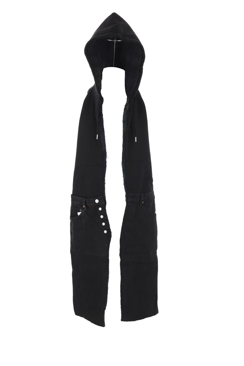 Bless' scarf made from a sweatshirt hood attached to jeans front and lined with check mohair wool. Gender: Men Material: 100% COTTON / 100% COTTON / 100% MOHAIR Color: BLACK+BLACK Made in: DE Product ID: 5325BLACKBLACK *Import tax/duty will be calculated at checkout (If applicable)