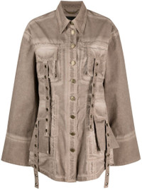 eyelet-detail denim jacket from BLUMARINE featuring light brown, cotton blend, eyelet detailing, pointed flat collar, front button fastening, two chest flap pockets, two side flap pockets, long sleeves and curved hem. This piece fits true to size. We recommend you get your regular size Model is 1,75m / 5ft 8in wearing size 40 (IT) Gender: Women Material: COTTON 97%, SPANDEX/ELASTANE 3% Color: BROWN Made in: AL Product ID: 4J015AN0811 *Import tax/duty will be calculated at checkout (If applicable)