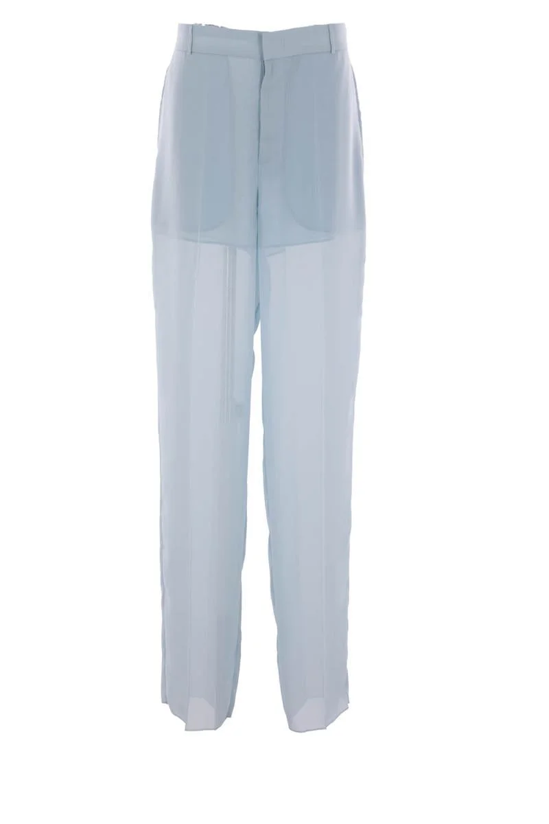 Blumarine straight-leg pants made of light blue georgette. Featuring a front closure with hook/button/zip, belt loops, multiple pockets, central crease, and partially lined interior. Gender: Women Material: 100%POLYESTER Color: TICINO Made in: IT Product ID: 4P094AN0946 *Import tax/duty will be calculated at checkout (If applicable)