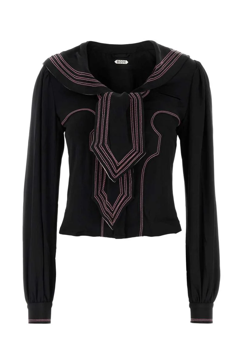 Black silk Seafarer shirt Gender: Women Material: EXTERIOR: 100% SILK Color: Black Made in: IN Product ID: WRF24SH007 BLACK *Import tax/duty will be calculated at checkout (If applicable)