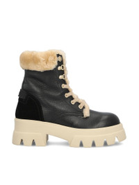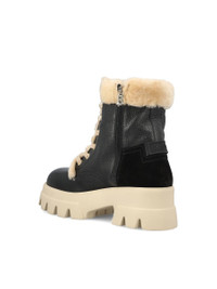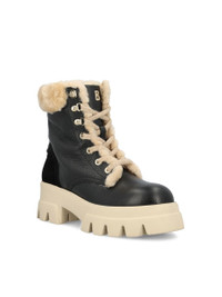 Bogner leather amphibians with shearling lining combine urban style and winter functionality. Made of soft black leather, they feature a thick notched ivory sole for grip and comfort. The shearling interior ensures warmth and softness, while the lace-up closure and contrasting details complete a contemporary and sophisticated design. - Upper: 85% leather, 15% shearling - Color: black - Shearling-lined interior - Lace-up front closure - Thick ivory-colored notched rubber sole - Bogner logo on heel - Made in Italy - Box included - Item number: 22542923130 Gender: Women Material: SOLE EVA/UPP 85%LH-15%SHEARLING/UPP SHEARLING Color: BLACK-BEIGE Made in: Italy Product ID: 22542923130_AI25 *Import tax/duty will be calculated at checkout (If applicable)
