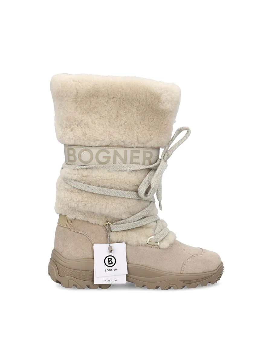 Bogner Alta Badia S 8 A snow boots in beige, designed to provide warmth and protection on winter days. Made of water-repellent technical material with warm padding and leather details, they combine functionality with sporty style. The notched rubber outsole ensures grip and stability even on snowy surfaces, while the Bogner logo signs the model with a distinctive detail. - Upper: suede and sheepskin shearling - Color: beige - Outsole: ice spike - collapsible spikes in a frame integrated into the tread; when activated, they provide extra support on slippery surfaces - Profiled rubber tread - Metal eyelets and wide lacing - Bogner logo applied on the outer side - Made in Italy - Box included - Item number: 22546902068 Gender: Women Material: SOLE RUBBER/UPP 32%LH-68%SHEARLING/LNG MICROVALBOA Color: WHITE Made in: Italy Product ID: 22546902068_AI25 *Import tax/duty will be calculated at checkout (If applicable)