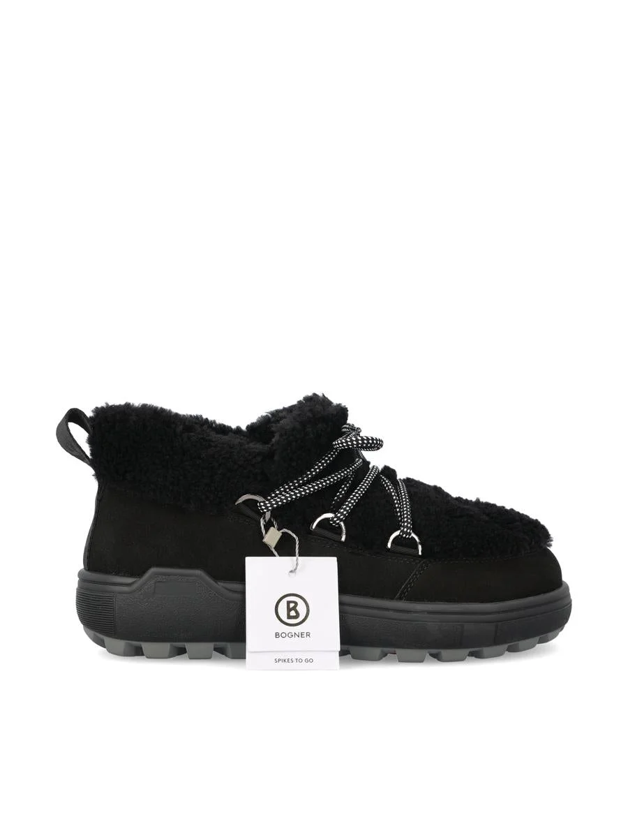 Bogner Chamonix S 19 women's snow boots, designed to offer maximum protection and comfort on winter days. Made of technical material with leather inserts and warm padding, they provide thermal insulation and durability. The notched sole with metal spikes ensures stability and grip even on ice and snow, combining performance and contemporary style. - Upper: natural lamb fur - Color: black - ICE-TRACK studded sole - Removable insole - Lacing system with metal eyelets - Reinforced heel - Made in Italy - Box included - Item code: 22546783001 Gender: Women Material: SOLE RUBBER/UPP 38%LH-62%SHEARLING/LNG SHEARLING Color: Black Made in: Italy Product ID: 22546783001_AI25 *Import tax/duty will be calculated at checkout (If applicable)