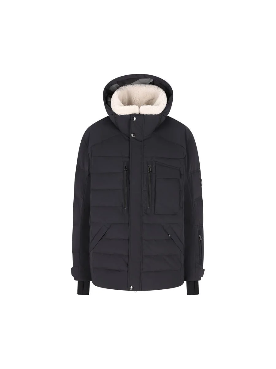 Bogner jacket made of technical polyamide, with warm padding and horizontal quilting. The model has a hood with contrasting interior, front zipper and button closure, as well as practical side pockets and a patch pocket on the chest. A functional and modern garment, ideal for facing the cold season in style. - Material: 87% polyamide, 13% elastane - Color: black - Hood with contrasting interior - Horizontal quilting - Front zipper and button closure - Side pockets and chest pockets - Elasticized cuffs and hem - Item code: 31099122026 Gender: Men Material: 87 % POLYAMID, 13% ELASTHAN Color: Black Made in: Czech Republic Product ID: 31099122026_AI25 *Import tax/duty will be calculated at checkout (If applicable)