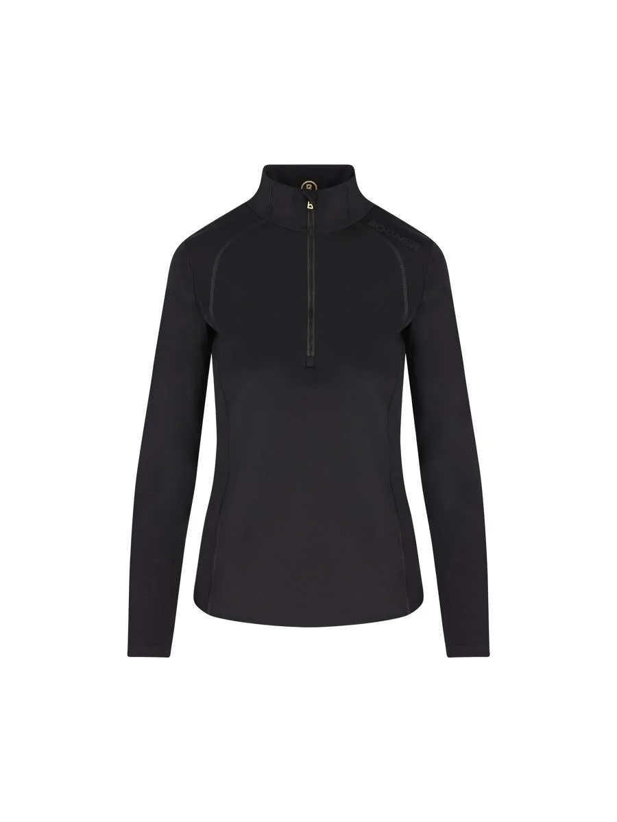 The Bogner Sport First Layer Medita jersey is made of technical stretch fabric designed to ensure comfort, breathability and freedom of movement during sports activities. Featuring a high collar with a half-zip and slim fit, it has a clean, essential design that reflects the house's functional elegance. - Material: 84% polyamide, 16% spandex - Color: black - Stand-up collar - Double-stitched cuffs - B-zip closure on collar - Shaping overlock seams BOGNER logo at collarbone - Reinforced hem - Item number: 51749791026 Gender: Women Material: 84 % POLYAMID, 16% ELASTHAN Color: Black Made in: Imported Product ID: 51749791026_AI25 *Import tax/duty will be calculated at checkout (If applicable)