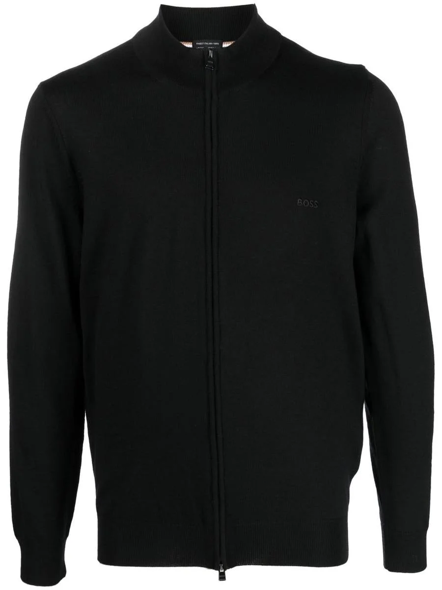 Boss 'Balonso' Black Virgin Wool Zip-Up Cardigan