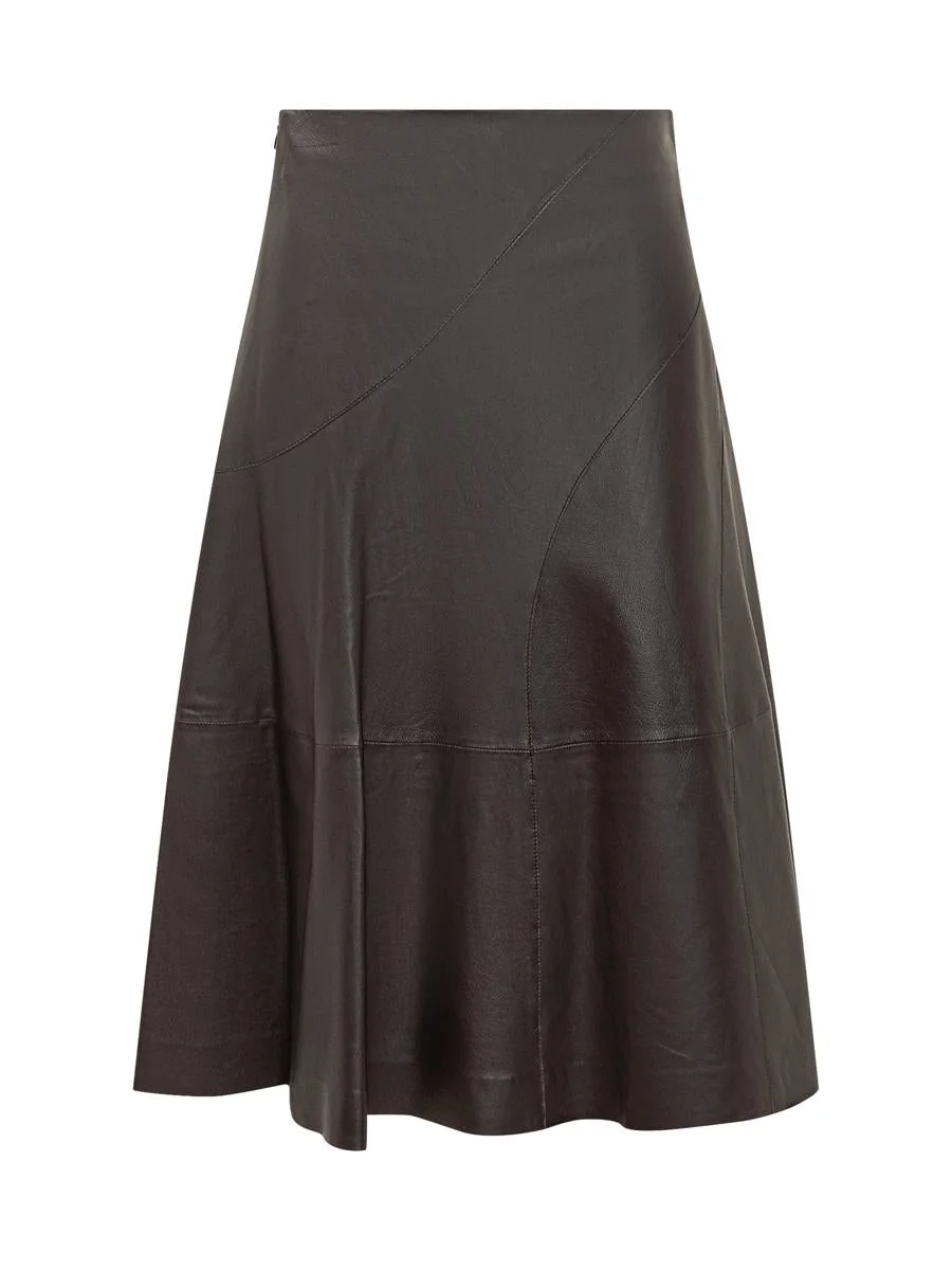 Boss brown leather midi skirt with tailored cuts and flared line. A refined and versatile garment, perfect for elegant or casual chic looks. Gender: Women Material: OUTSIDE:100% LEATHER LINING:55% POLYESTER, 45% VISCOSE Color: BROWN Made in: Imported Product ID: 50549157 557 *Import tax/duty will be calculated at checkout (If applicable)