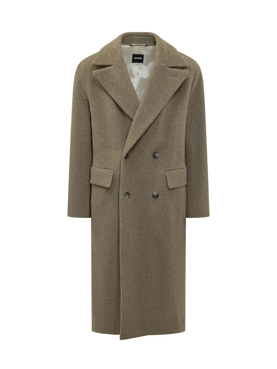 Boss Boss Herringbone Wool Double-Breasted Coat