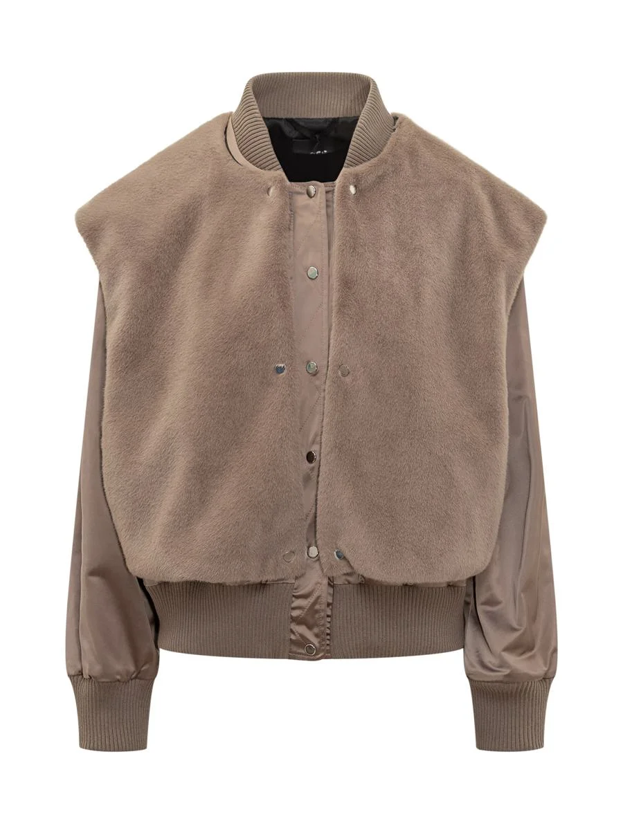Boss wool-blend bomber jacket with fur-effect body and satin sleeves. Snap button closure and ribbed trim for an urban, refined look. Gender: Women Material: OUTSIDE:100% POLYESTER LINING:55% POLYESTER, 45% VISCOSE Color: Beige Made in: Bulgaria Product ID: 50546846 247 *Import tax/duty will be calculated at checkout (If applicable)