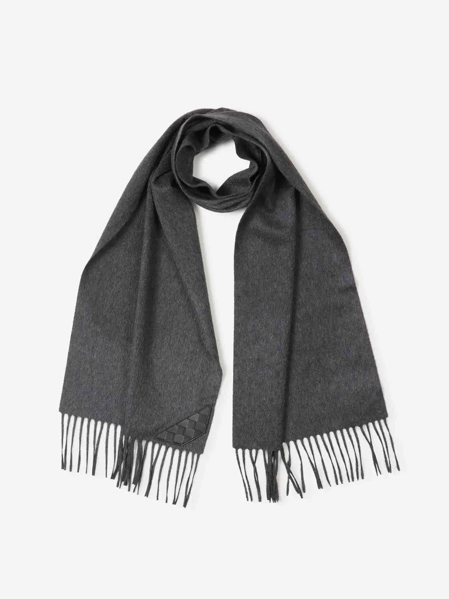 Cashmere ScarfScarf By Bottega Veneta• Intrecciato leather applique• 36 x 180 cm• Made of cashmere fabricComposition: 100% cashmereItaly Gender: Men Material: 100% CASHMERE Color: ANTRACITE GREY Made in: Italy Product ID: 845830V3VU0_1307CHARCOAL MELANGE *Import tax/duty will be calculated at checkout (If applicable)