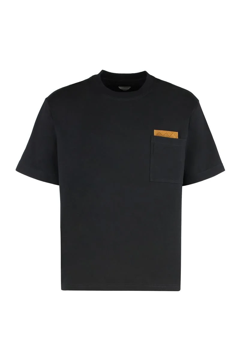 Cotton crew-neck T-shirt Suede details Front pocket 100% Cotton, 100% Cow hide Gender: Men Material: COTTON Color: Black Made in: Italy Product ID: 838924V4N50_1000 *Import tax/duty will be calculated at checkout (If applicable)