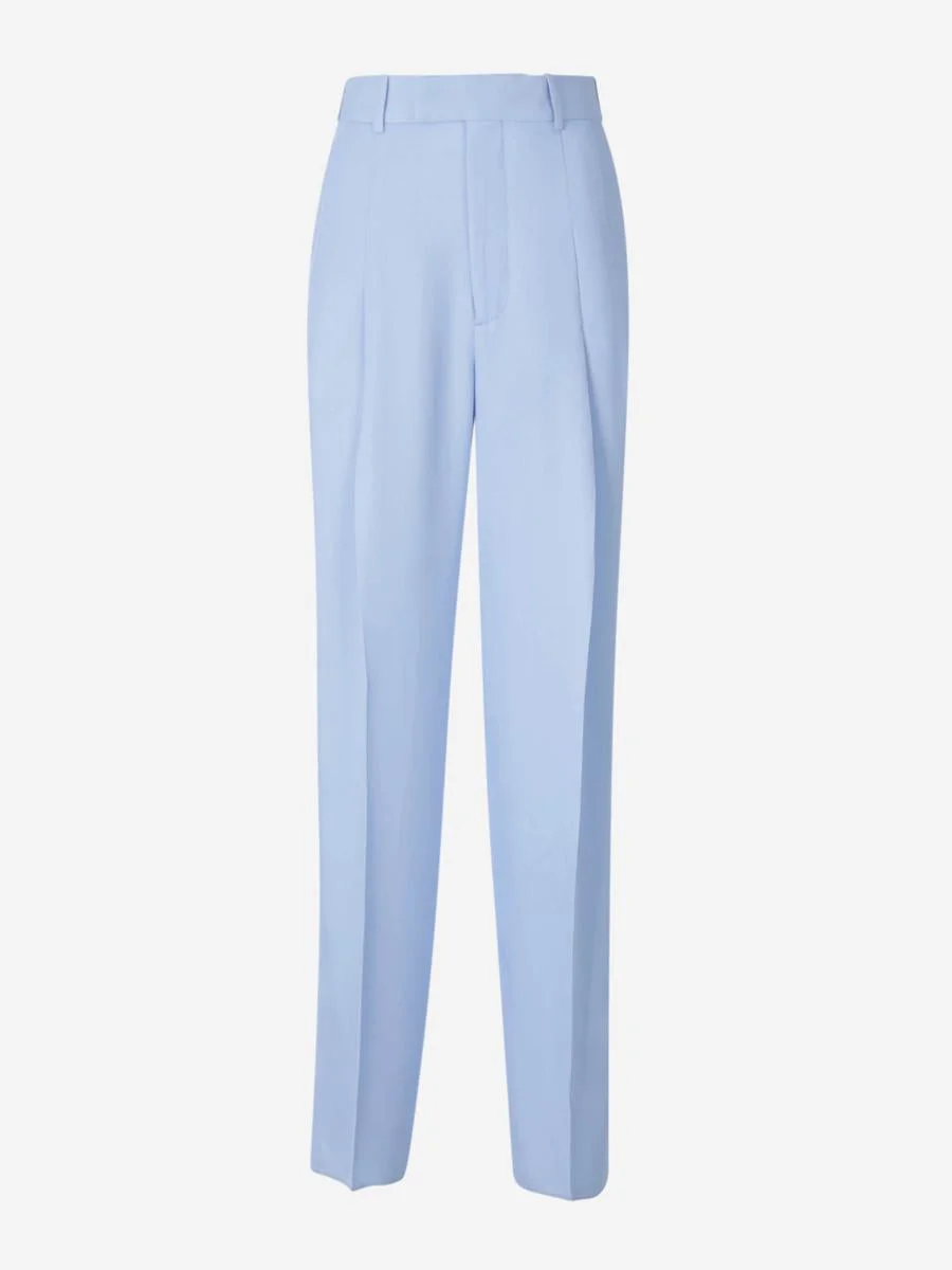 Pants by Bottega Veneta Wide leg High waist Made of viscose and silk Hook-and-eye and zip fastening Belt loops Four darts Front pockets Two back pockets You can book a private appointment with us so that we can take your measurements and customize it for you. Made in Italia Length: 110 cm 68% Viscose, 32% Silk Gender: Women Material: 68% VISCOSE, 32% SILK Color: BLUE Made in: Italy Product ID: 820107V5D90_4350Sky blue *Import tax/duty will be calculated at checkout (If applicable)