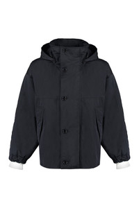 Hooded nylon jacket Layered item Ribbed knit cuffs Adjustable bottom drawstring Padding: 100% polyester 89% Wool, 10% Polyamide, 100% Polyamide, 1% Elastane Gender: Men Material: POLYAMIDE Color: Black Made in: IT Product ID: 750109VF4K0_1000 *Import tax/duty will be calculated at checkout (If applicable)