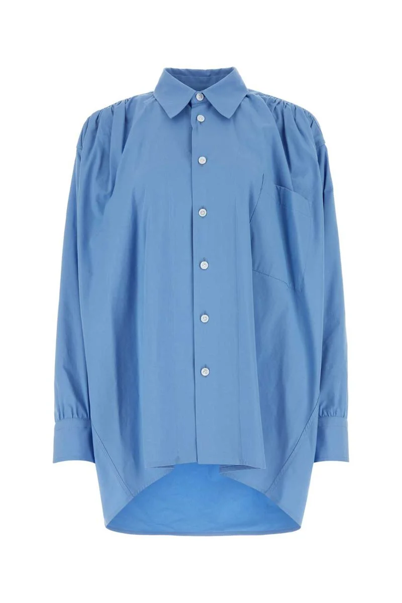 Light blue cotton blend oversize shirt Gender: Women Material: EXTERIOR: 70% COTTON 20% VISCOSE 8% POLYESTER Color: BLUE Made in: IT Product ID: 777451VA5Y0 4225 *Import tax/duty will be calculated at checkout (If applicable)