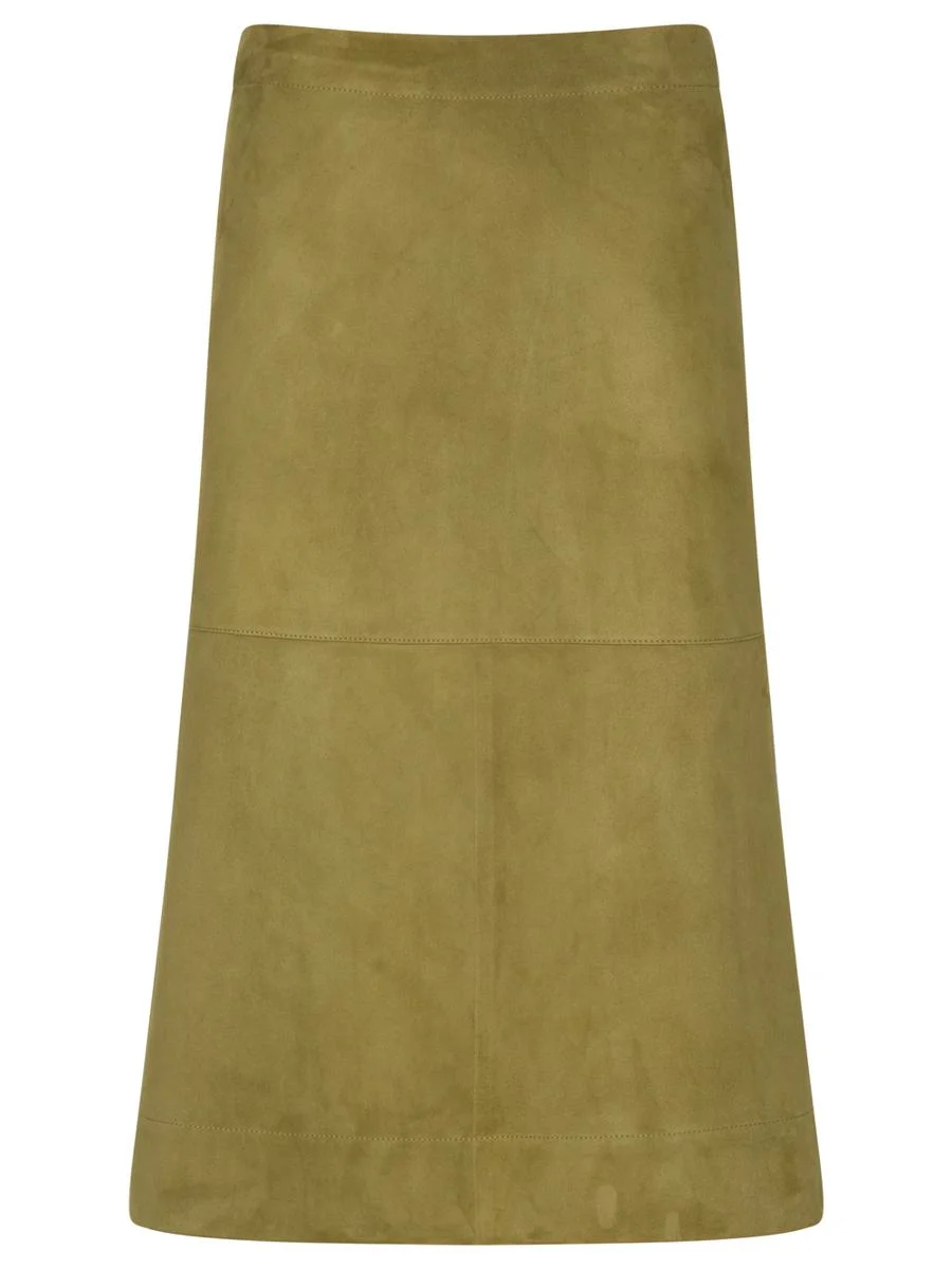 Bottega Veneta Suede Leather Midi Skirt Clothing Gender: Women Material: SUEDE | 100% LAMBSKIN Color: GREEN Made in: IT Product ID: 798890/V4LG0_7045 *Import tax/duty will be calculated at checkout (If applicable)
