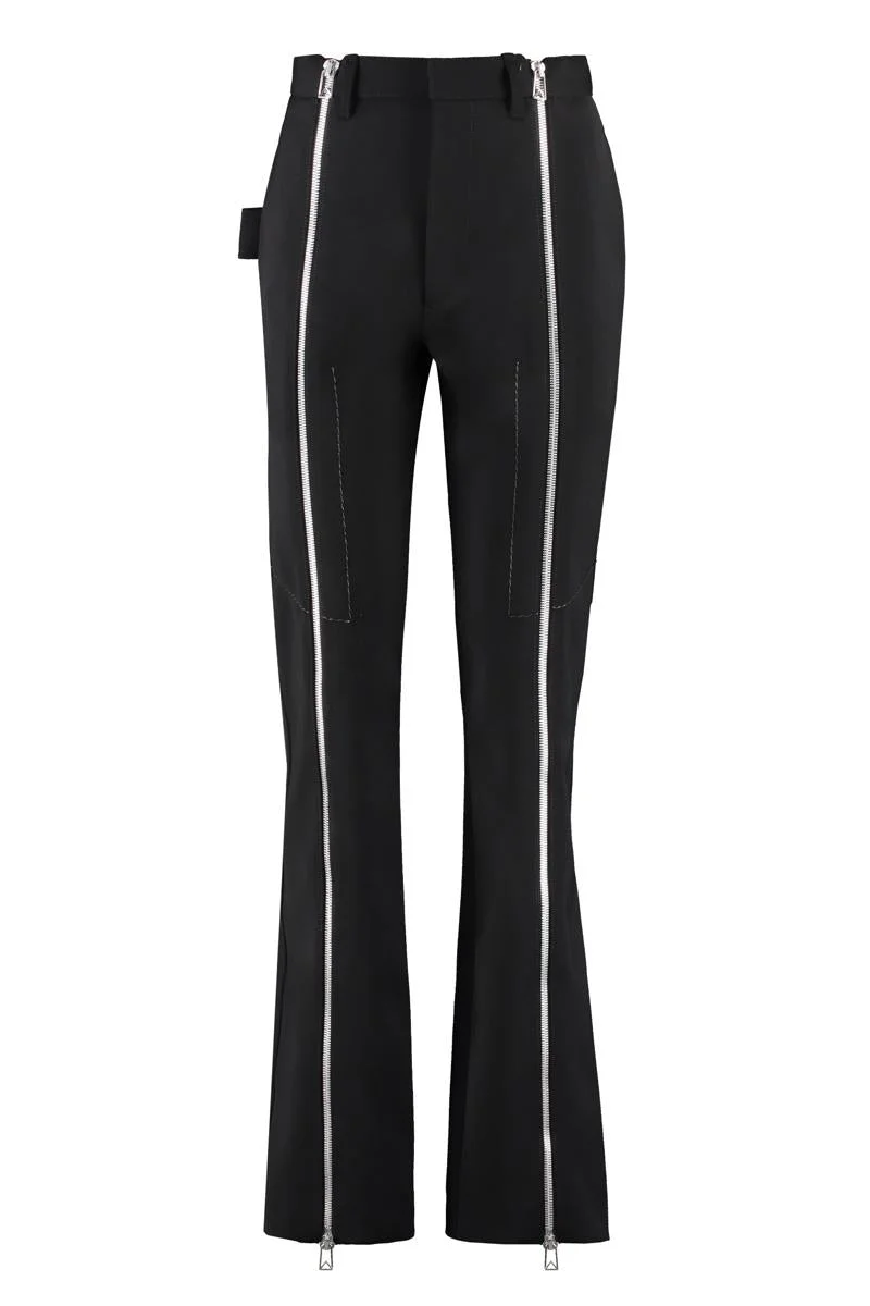 Wool trousers Salon 02 collection Extendable zippers Decorative stitches 80% Wool, 8% Polyamide, 2% Elastane Gender: Women Material: WOOL Color: BLACK Made in: IT Product ID: 681895V0IV0_1000 *Import tax/duty will be calculated at checkout (If applicable)