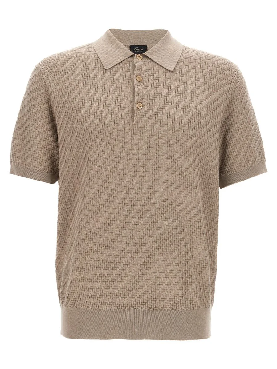 Polo shirt in silk blend knit with woven pattern, collar and buttons, and short sleeves Gender: Men Material: 57% COTTON, 43% SILK Color: Beige Made in: IT Product ID: UMR20OPAK229700 *Import tax/duty will be calculated at checkout (If applicable)