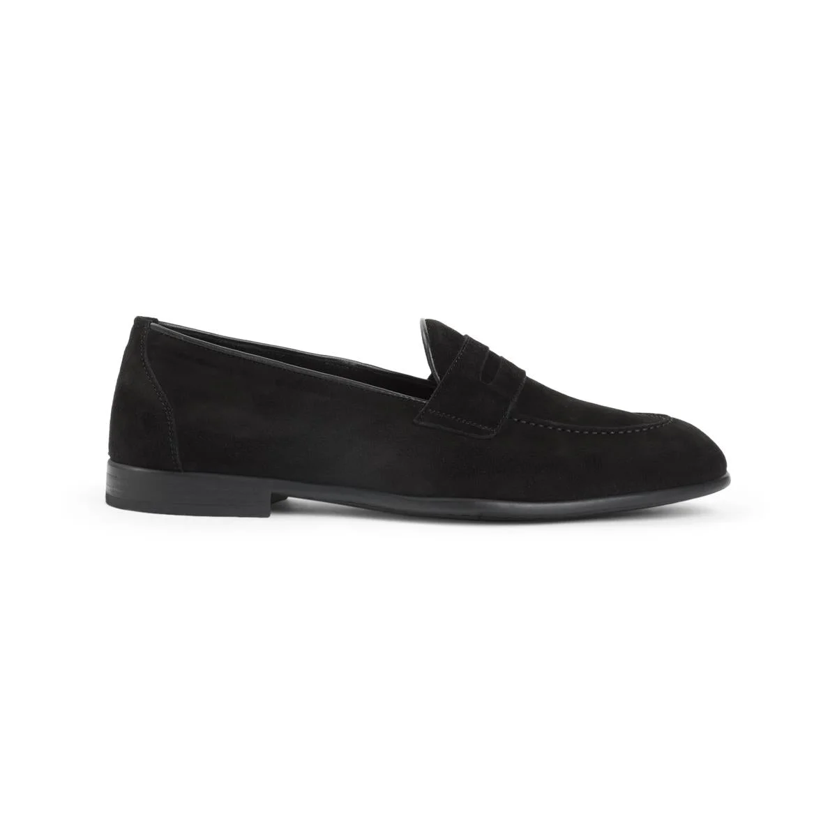 Brioni Penny Black Leather Loafers. Crafted from black suede leather, almond toe, Penny strap on the top, black piping, leather lining, insole and outsole. Gender: Men Material: 100%LEATHER Color: Black Made in: Italy Product ID: QEIP0L.P9723_1000 *Import tax/duty will be calculated at checkout (If applicable)