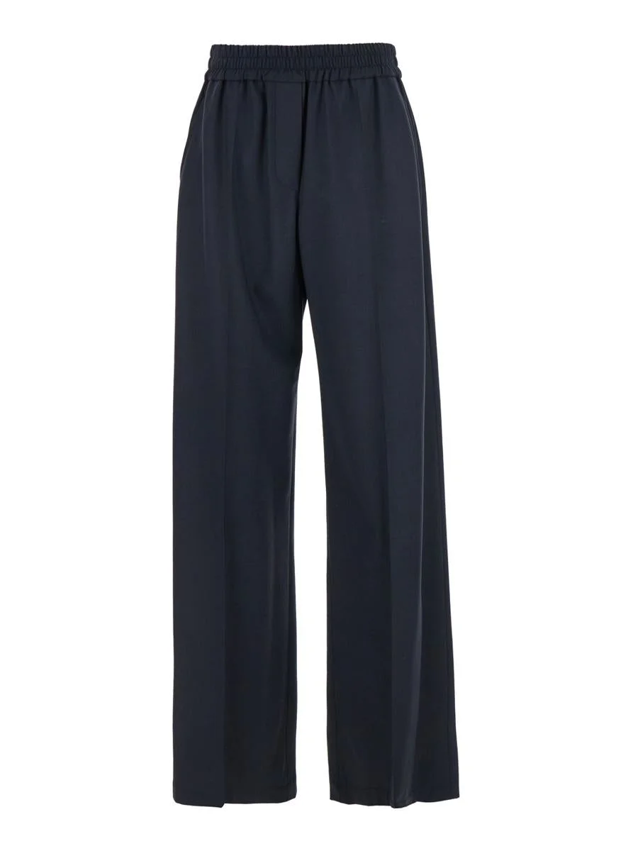 Brunello Cucinelli Blue Pants With Elastic Waist In Wool Blend Stretch Woman