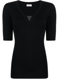 Stretch cotton ribbed jersey T-shirt with precious insert