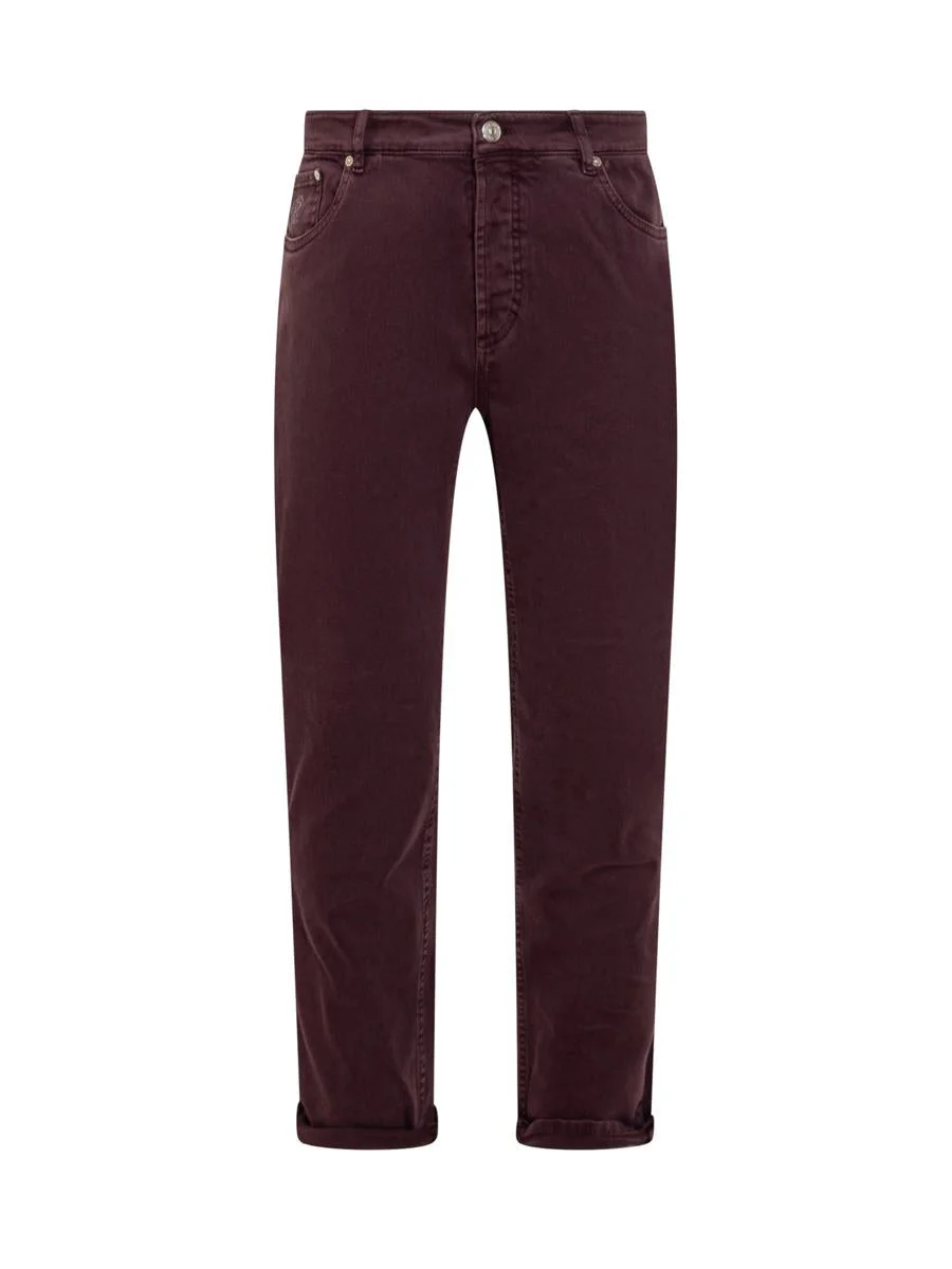 Brunello Cucinelli pants in burgundy-dyed denim. Regular fit with turned-up hem, made of stretch cotton. Gender: Men Material: 99% COTTON, 1% ELASTANE Color: PURPLE Made in: Italy Product ID: M277UD3210 C7031 *Import tax/duty will be calculated at checkout (If applicable)