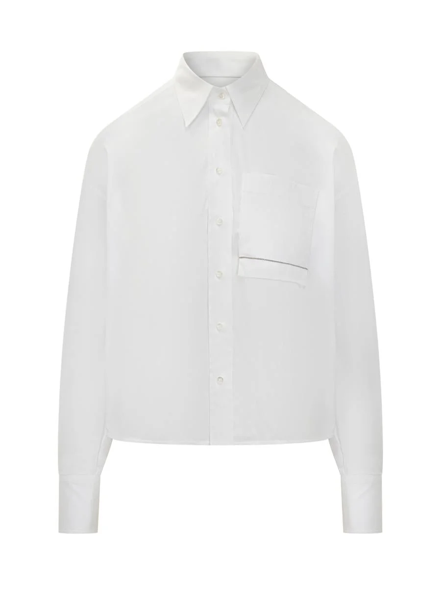 White pure cotton shirt with a modern silhouette and cropped cut. The design features a patch pocket with contrasting detail, classic collar and long sleeves with textured cuffs. Gender: Women Color: MULTICOLOR Made in: Imported Product ID: M0091MY826 C159 *Import tax/duty will be calculated at checkout (If applicable)