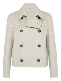 Hand-crafted cropped pea coat in cashmere double beaver cloth with monili