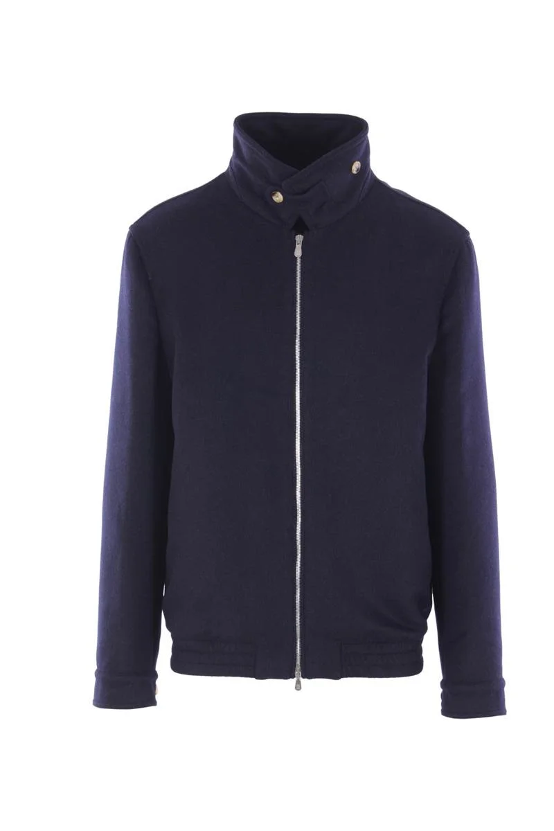 Brunello Cucinelli bomber jacket crafted from blue wool flannel double cloth. Characterized by a high collar, front two-way zip closure, welt pockets, long sleeves with buttoned cuffs, and an elasticated hem. Lined interior. Gender: Men Material: (TY496) 100%WOOL Color: NAVY/LEAD+BLUE Made in: Italy Product ID: MY4966379CSI79 *Import tax/duty will be calculated at checkout (If applicable)