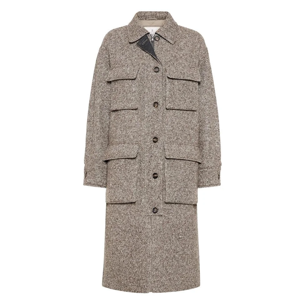 Virgin wool and silk mélange diagonal coat with Thermore® padding and monili