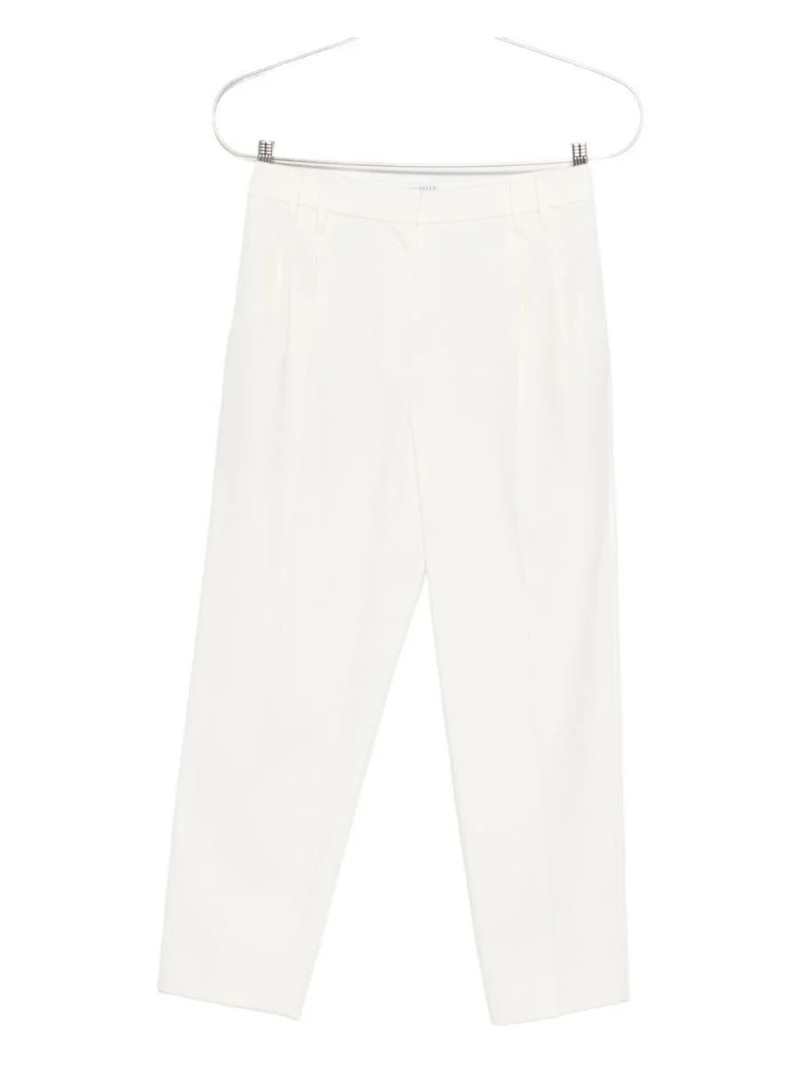 white pleated front straight leg cropped length This piece fits true to size. We recommend you get your regular size Model is 1,75m / 5ft 8in wearing size 40 (IT) Gender: Women Material: OUTER: COTTON 97%, ELASTANE 3% LINING: ACETATE 56%, VISCOSE 44% Color: WHITE Made in: Italy Product ID: MP126P8308C1542 *Import tax/duty will be calculated at checkout (If applicable)