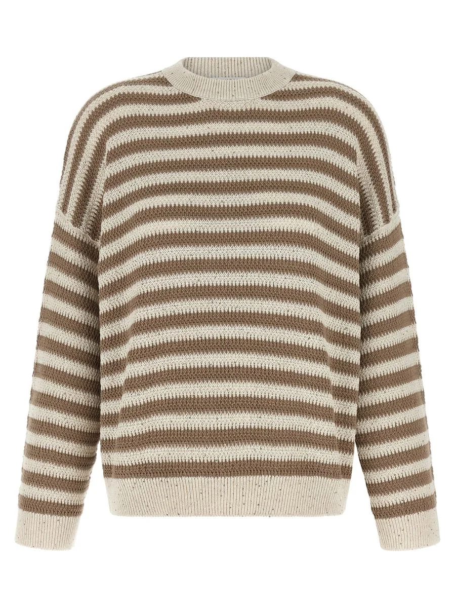 'Dazzling' striped cotton sweater with English rib knit with all-over sequin applique, crew neck, long cuffed sleeves and dropped shoulder Gender: Women Material: 96% COTTON, 4% POLYESTER Color: MULTICOLOR Made in: Italy Product ID: MDV752200PCCG19 *Import tax/duty will be calculated at checkout (If applicable)