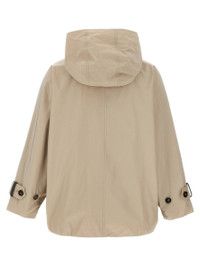 Double-breasted jacket in water-repellent technical fabric, baggy style with bat sleeves, hood, button closure, pockets, long sleeves with adjustable strap with Monile detail Gender: Women Material: 55% POLYESTER, 45% COTTON Color: Beige Made in: IT Product ID: MG5017868C6037 *Import tax/duty will be calculated at checkout (If applicable)