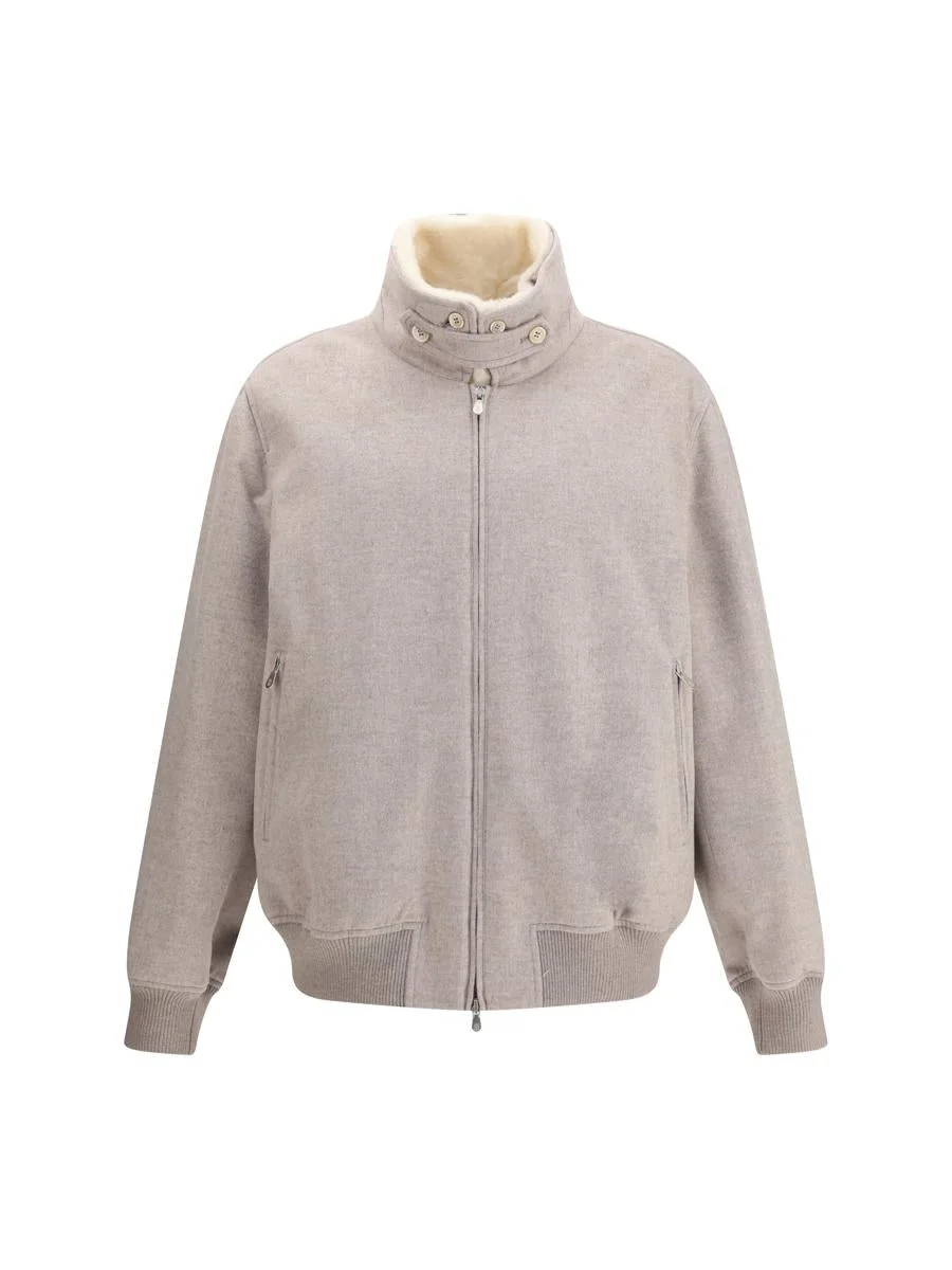 BRUNELLO CUCINELLI'S CASHMERE BOMBER JACKET COMBINES FINE MATERIALS AND SPORTY DESIGN IN A CASUAL, REFINED GARMENT. MADE OF MEMBRANED CASHMERE BEAVER, IT STANDS OUT FOR ITS SOFT HAND, ENHANCED BY THE DETACHABLE SOFT SHEARLING INSERT. THE PROTECTIVE INNER MEMBRANE AND LIGHTWEIGHT THERMORE® PADDING ENSURE COMFORT AND PROTECTION, PERFECT FOR FUNCTIONAL WEAR WITHOUT SACRIFICING STYLE. RTW IT Gender: Men Material: KASHMIR/CAPRA HIRCUS Color: Beige Made in: Italy Product ID: MM4006889_CBR04 *Import tax/duty will be calculated at checkout (If applicable)